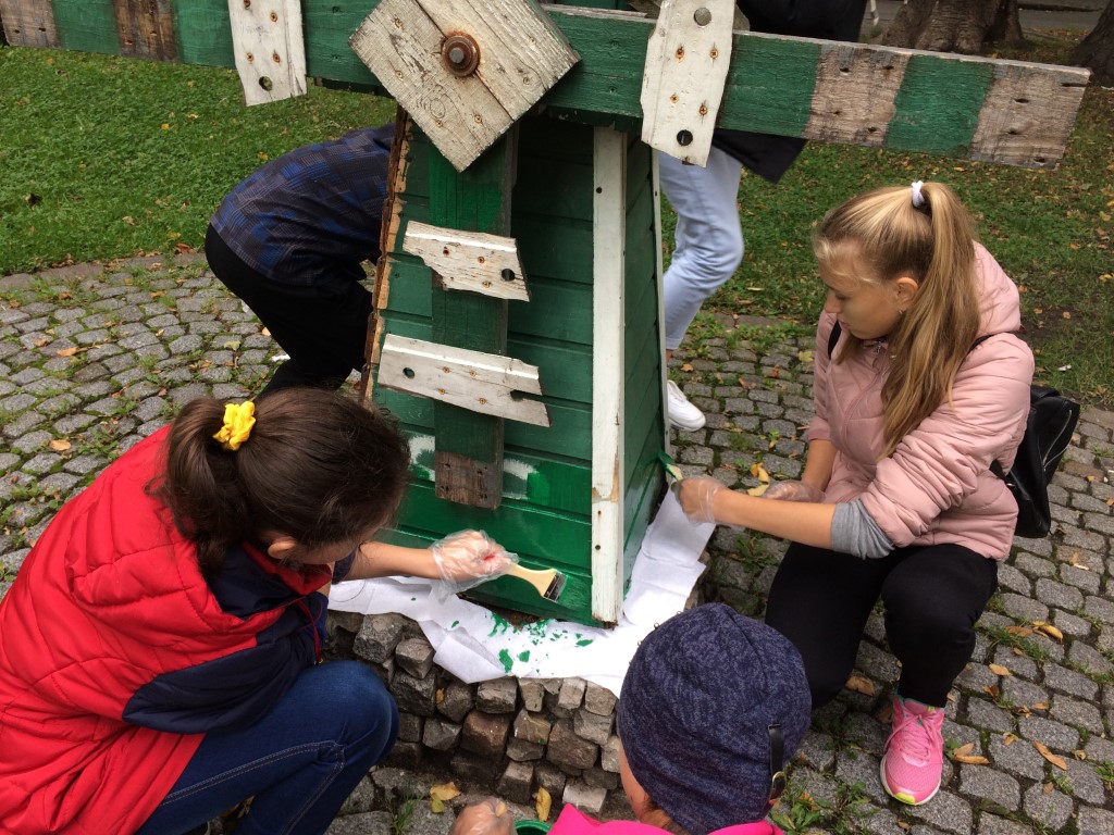 Учащиеся объединения «Архитектура и дизайн» (педагог Артимовская Валентина Сергеевна) занялись реконструкций мельницы в сквере «Российско-голландской дружбы».
