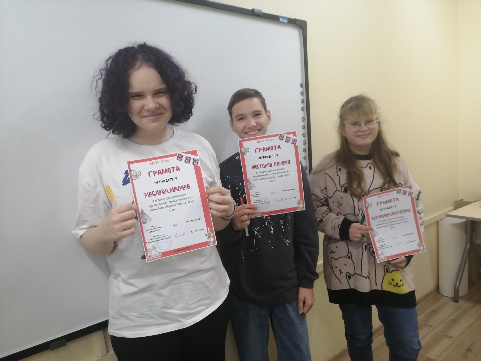 А учащимся 1-го года обучения по программе «Lingua Teens» (педагог Журавлева И.Р.) была предоставлена возможность попробовать себя в роли литературных переводчиков в конкурсе на лучший художественный перевод. Ребята переводили отрывок из сказки английского писателя Льюиса Кэрролла «Алиса в стране чудес».