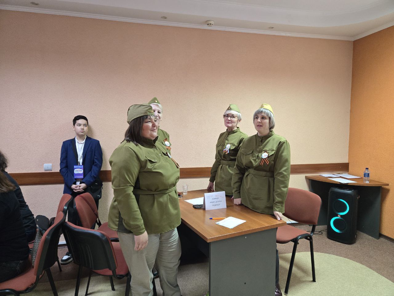 Раунд 4 — Кино и музыка военных лет Вопросы касались известных фильмов и музыкальных произведений, созданных в годы войны, позволяя участникам вспомнить историю советского кинематографа и музыкальной культуры тех времен.