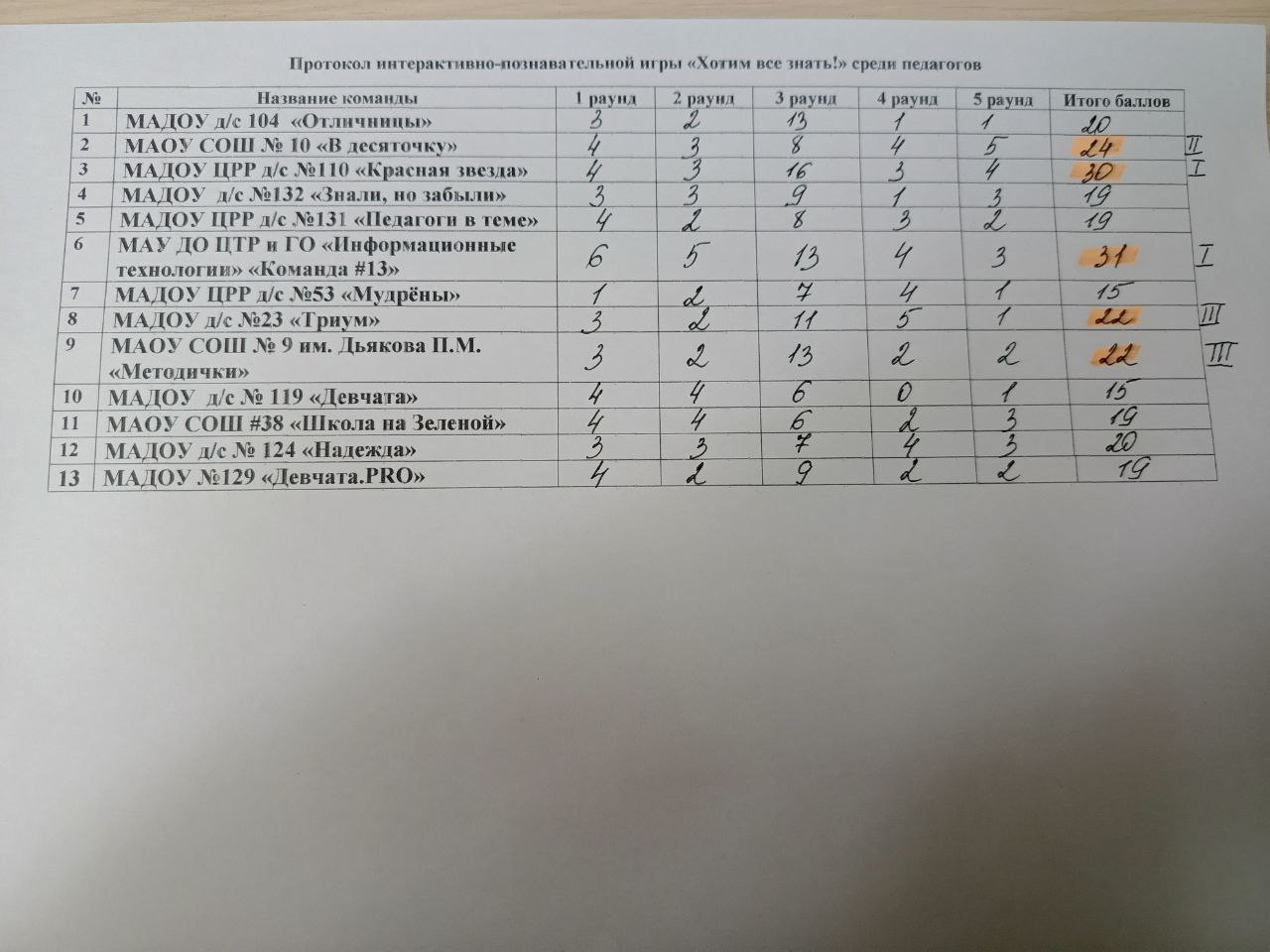Вне игры команда МАУ ДО ГК ЦТР и ГО "Информационные технологии" заняли 1 место.