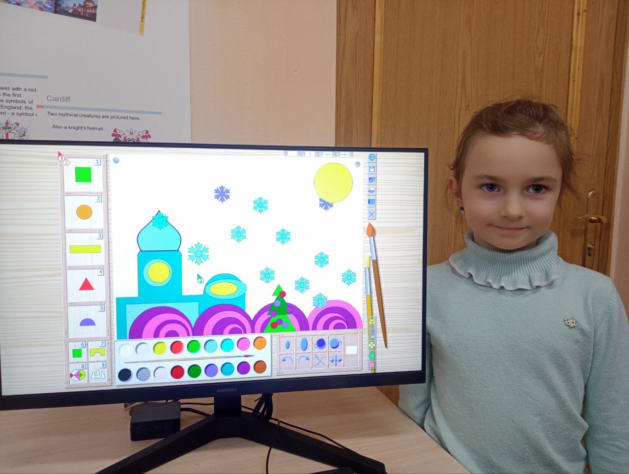 Конструируя элементы городского пейзажа, они знакомятся с композицией, равновесием, определением линии горизонта и первичным понятием перспективы.