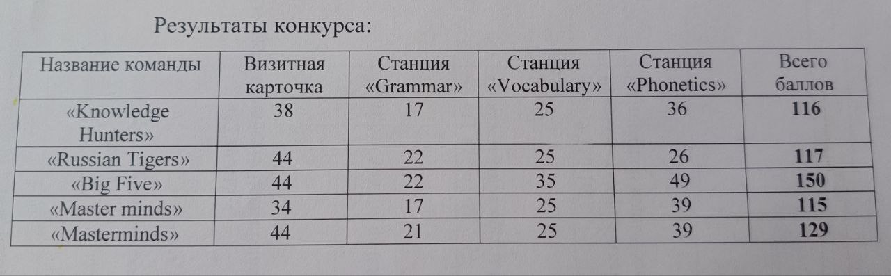 Второй этап – игровые испытания по станциям «Grammar», «Vocabulary», «Phonetics». На прохождение каждой станции отводилось 15 минут. Участники проявили командную слаженность при выполнение заданий, продемонстрировали знания, умения и навыки в области грамматики, лексики, фонетики.