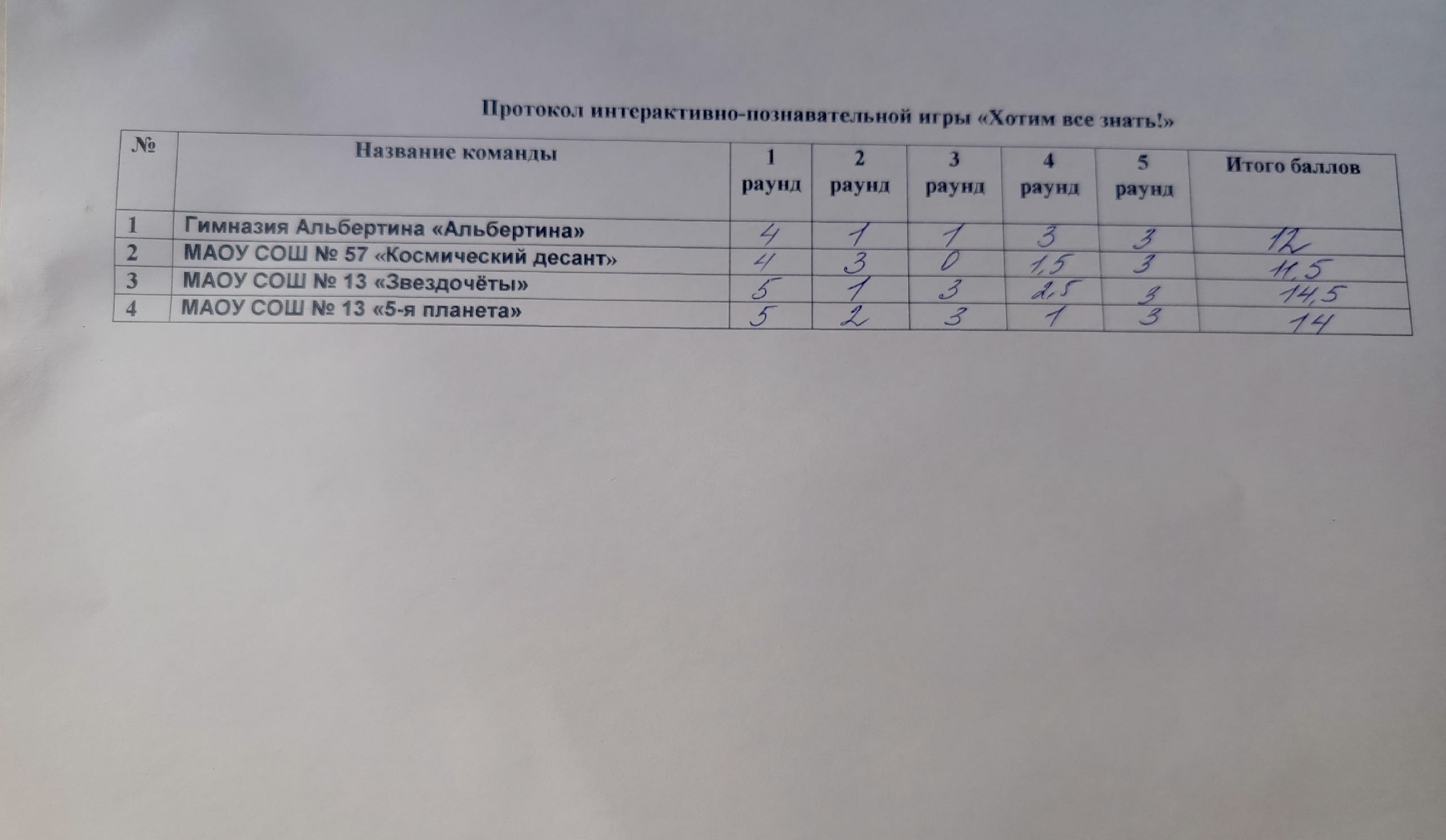 1 место: МАОУ СОШ №13 команда "Звездочёты"